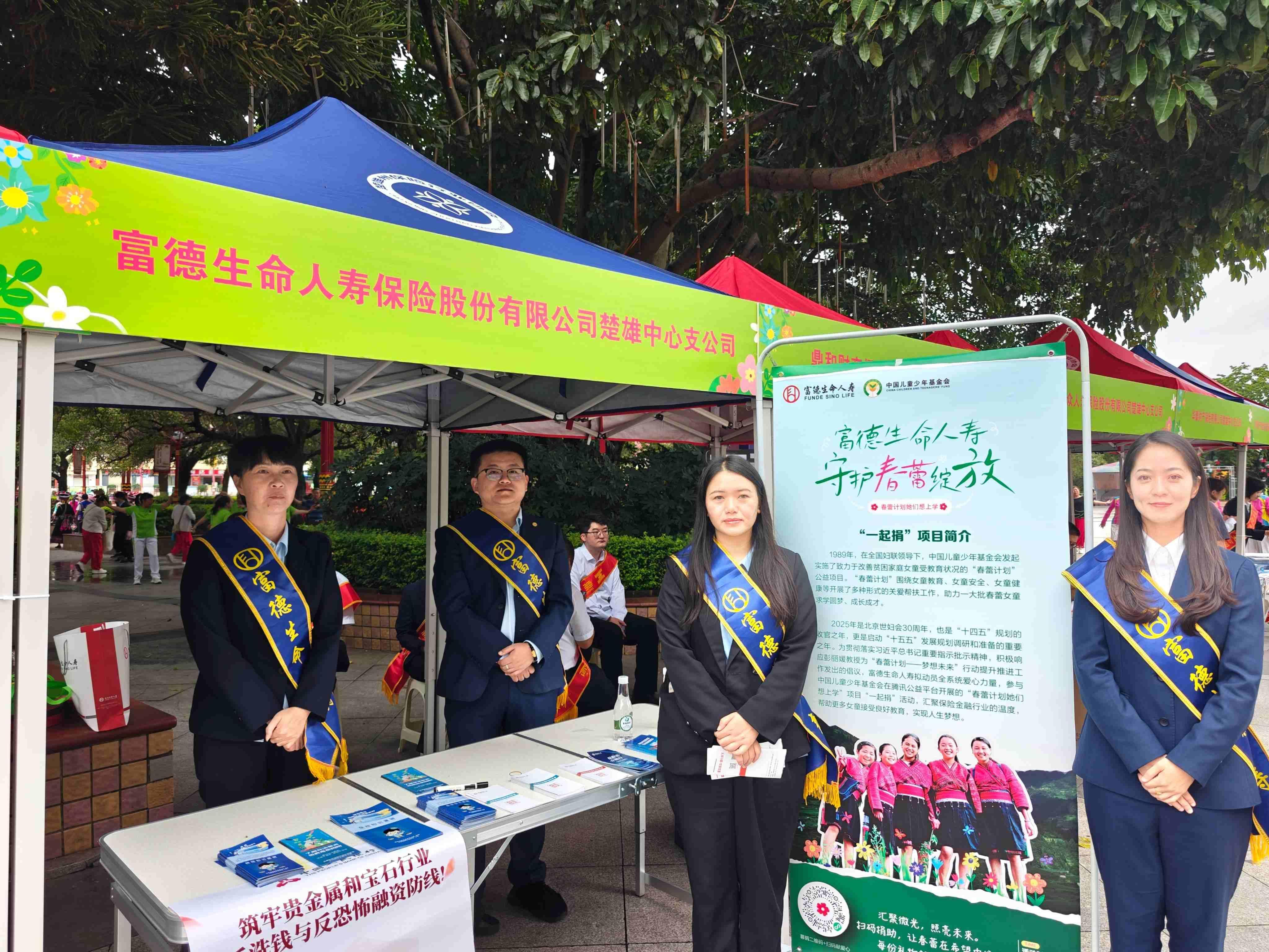 为践行“富及民众、德行天下”的企业使命,将“守护困境女童求学梦”的公益理念传递给更多社会公众,富德生命人寿楚雄中心支公司于9月中下旬,组织员工走进社区、商圈开展“守护春蕾绽放”一起捐活动外出宣传,通过面对面互动、现场演示等方式,邀请市民共同参与“春蕾计划”,为困境女童汇聚更多爱心力量。