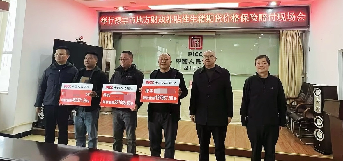 12月26日,人保财险禄丰支公司举办了禄丰市地方财政补贴性生猪期货价格保险赔付现场会,现场向三户参保养殖户集中支付赔款共计88.1万元,切实发挥了保险抵御生猪市价跌落损失风险、稳定生猪产业发展的功能作用。
