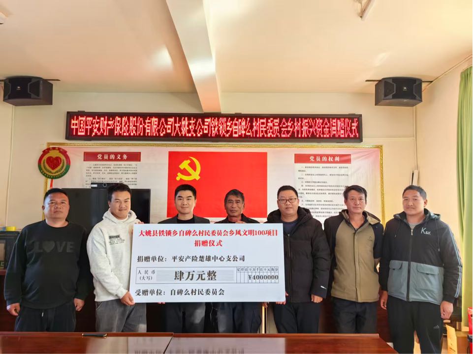 情系乡村振兴善款传递温情——平安产险大姚支公司开展 “乡风文明”项目捐赠活动